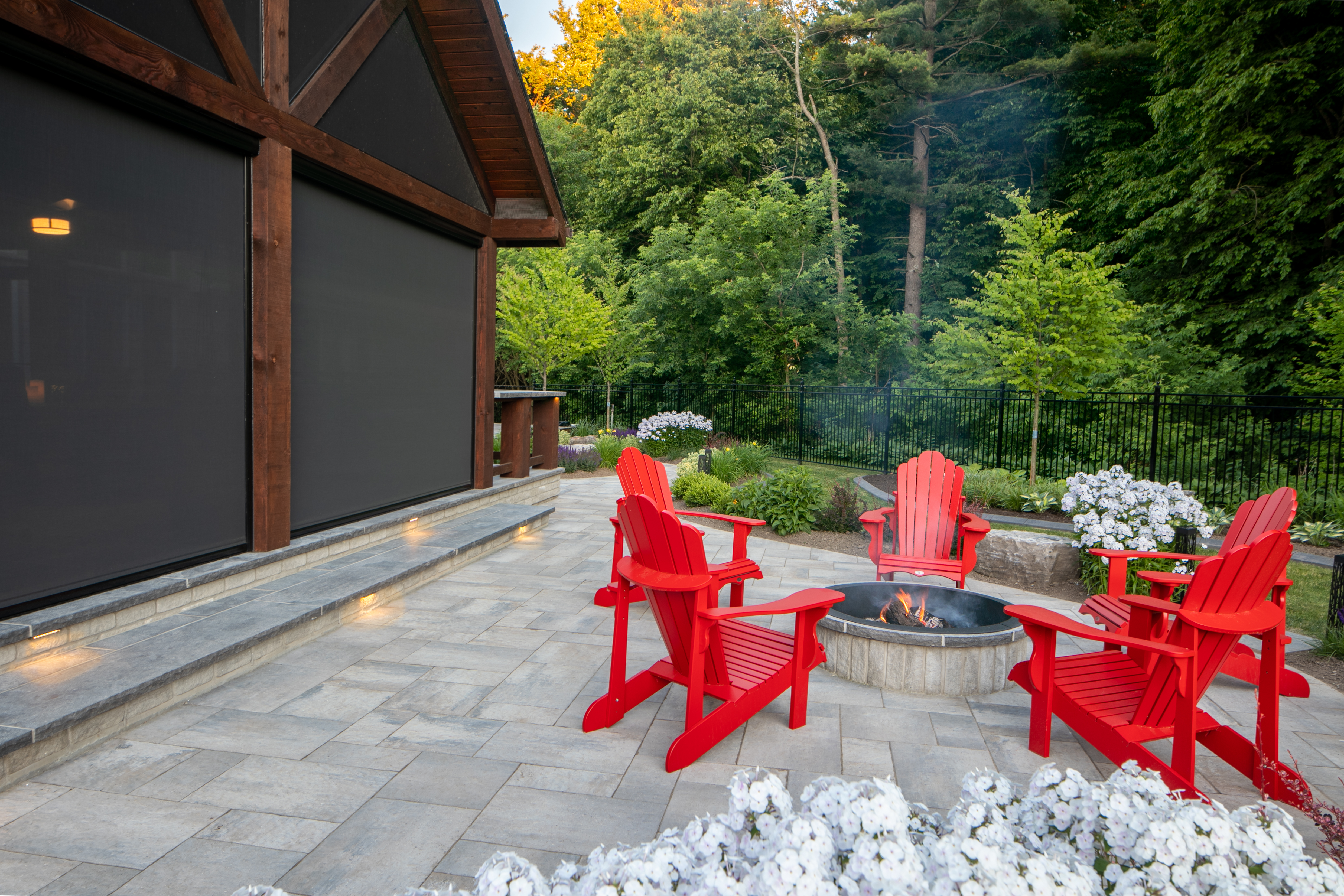 Convenience: The location on the property should be considered. Sometimes it is nice to have the firepit close to the house, but other times it is neat to have the firepit further away from the house to feel more remote. It is wise to consider wood storage when locating your firepit.