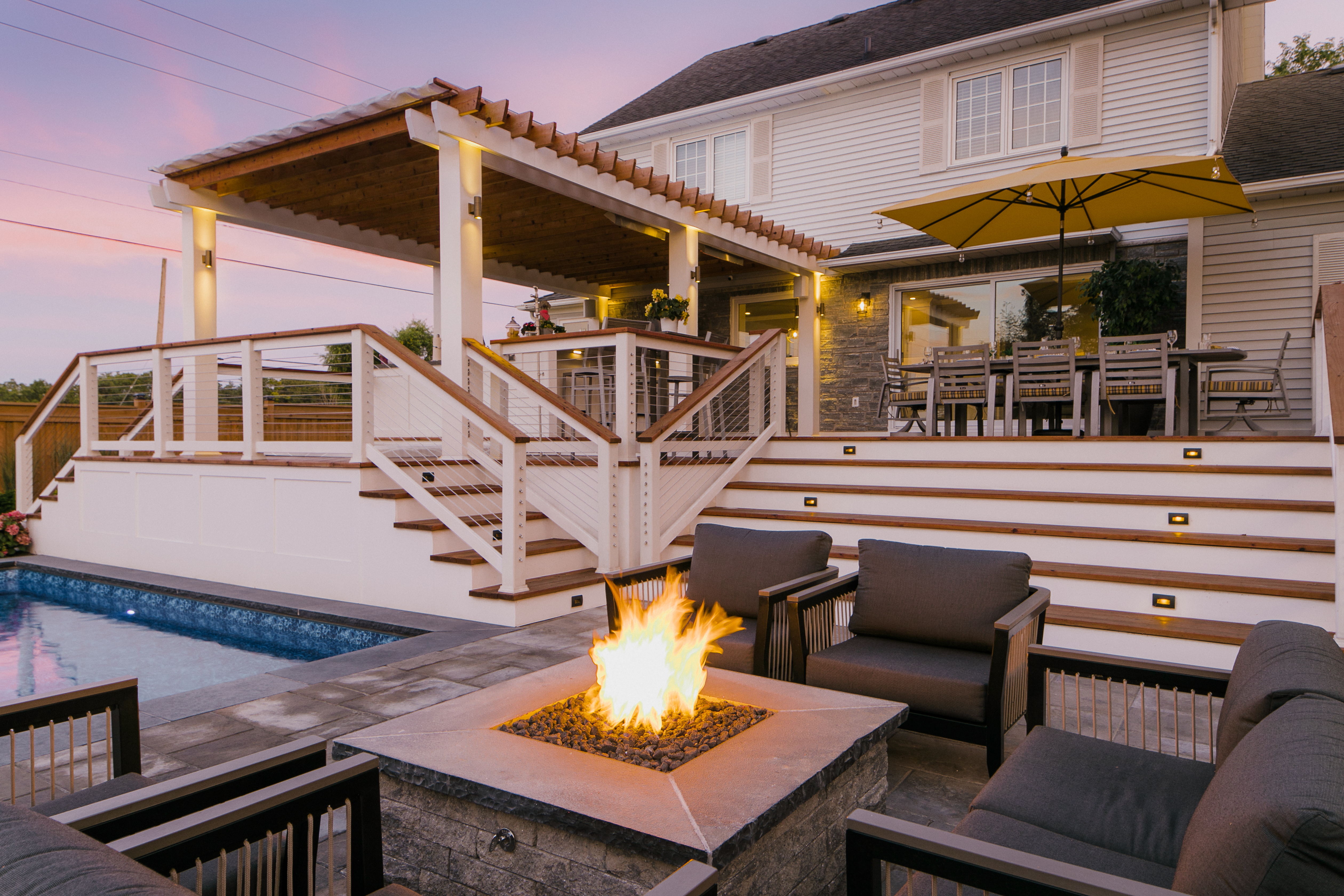 Convenience: The location on the property should be considered. Sometimes it is nice to have the firepit close to the house, but other times it is neat to have the firepit further away from the house to feel more remote. It is wise to consider wood storage when locating your firepit.