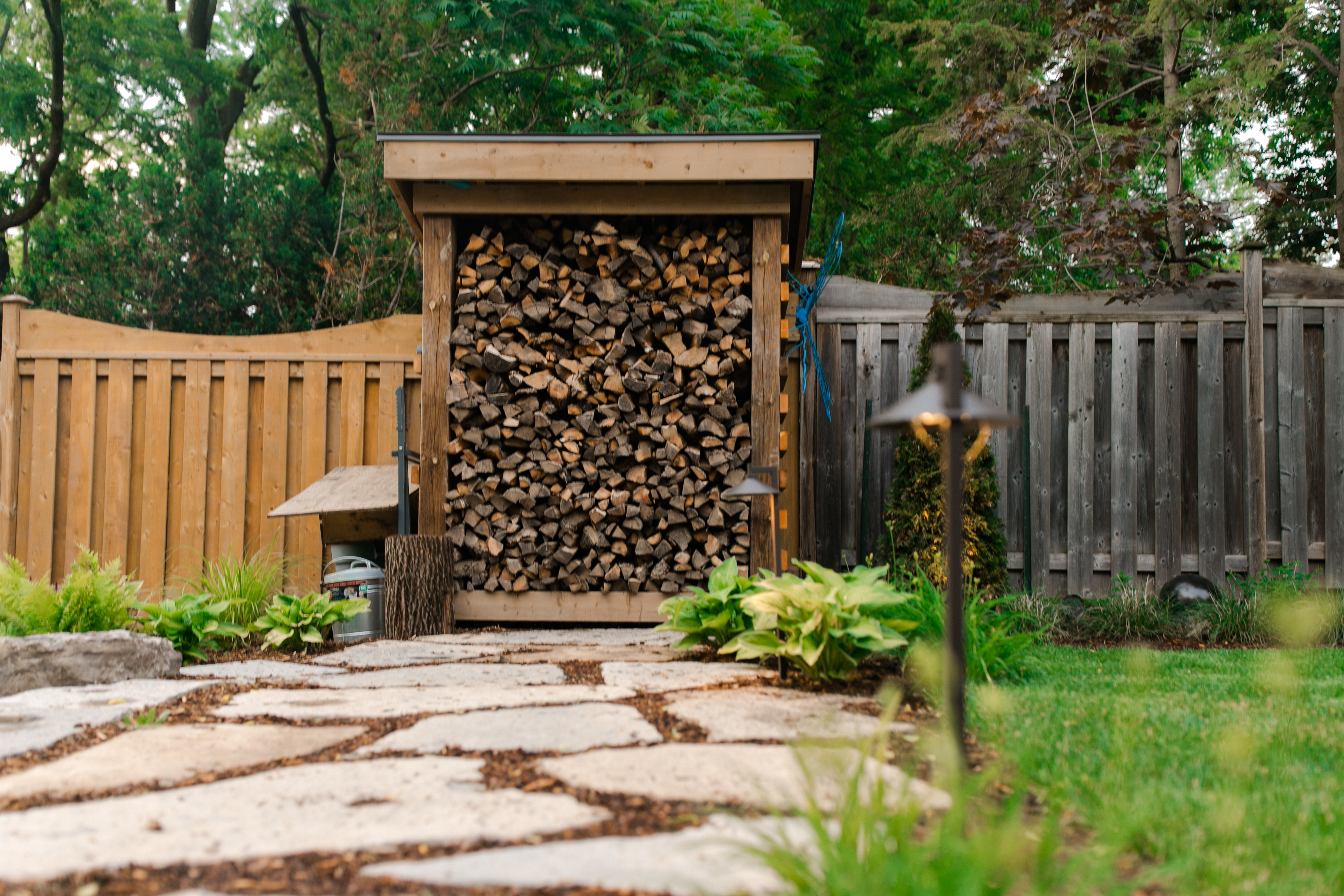 The woodshed, located at the back corner of the property, provides functionality and character.