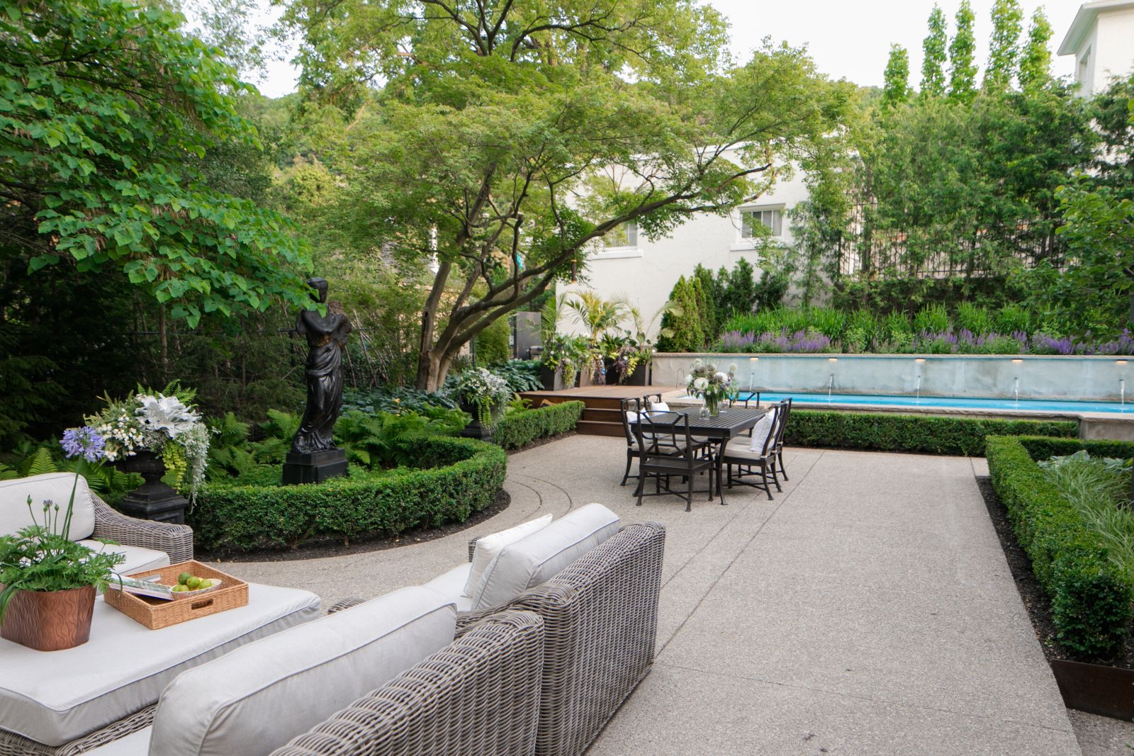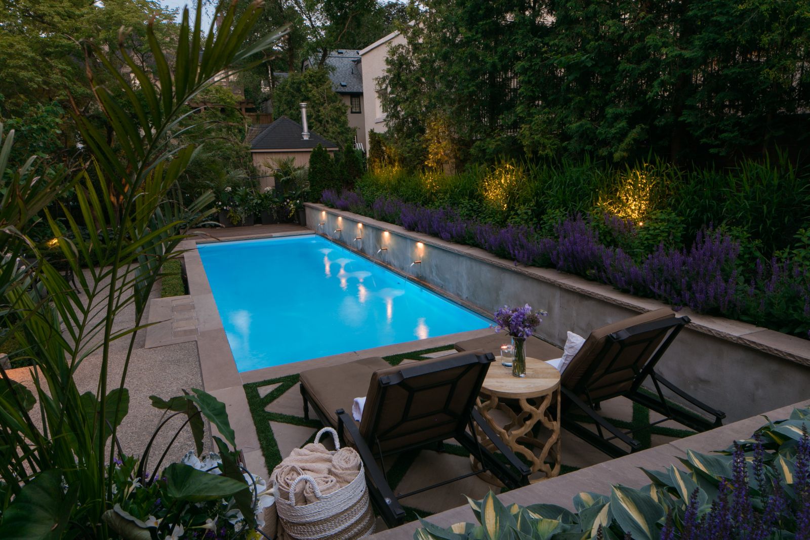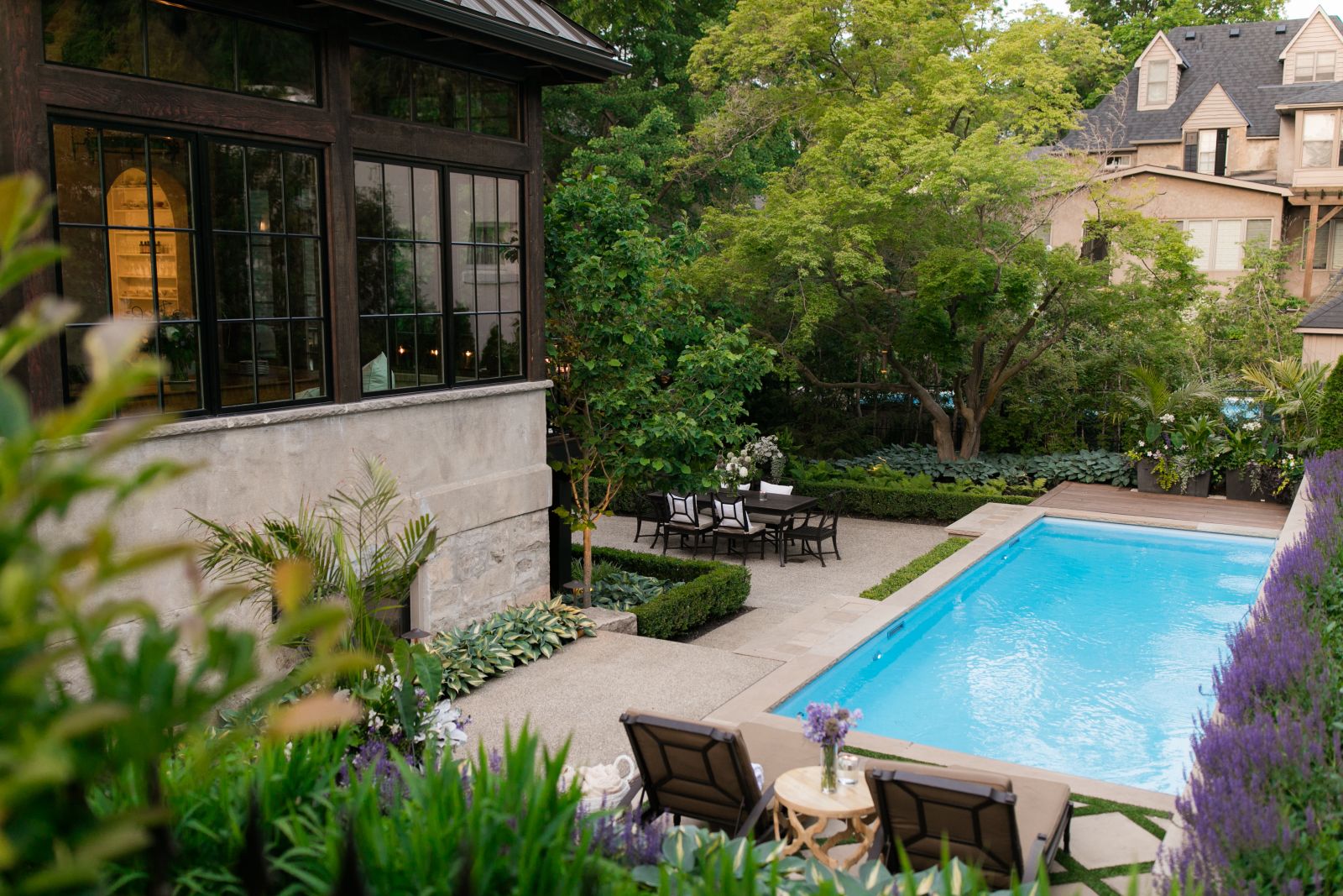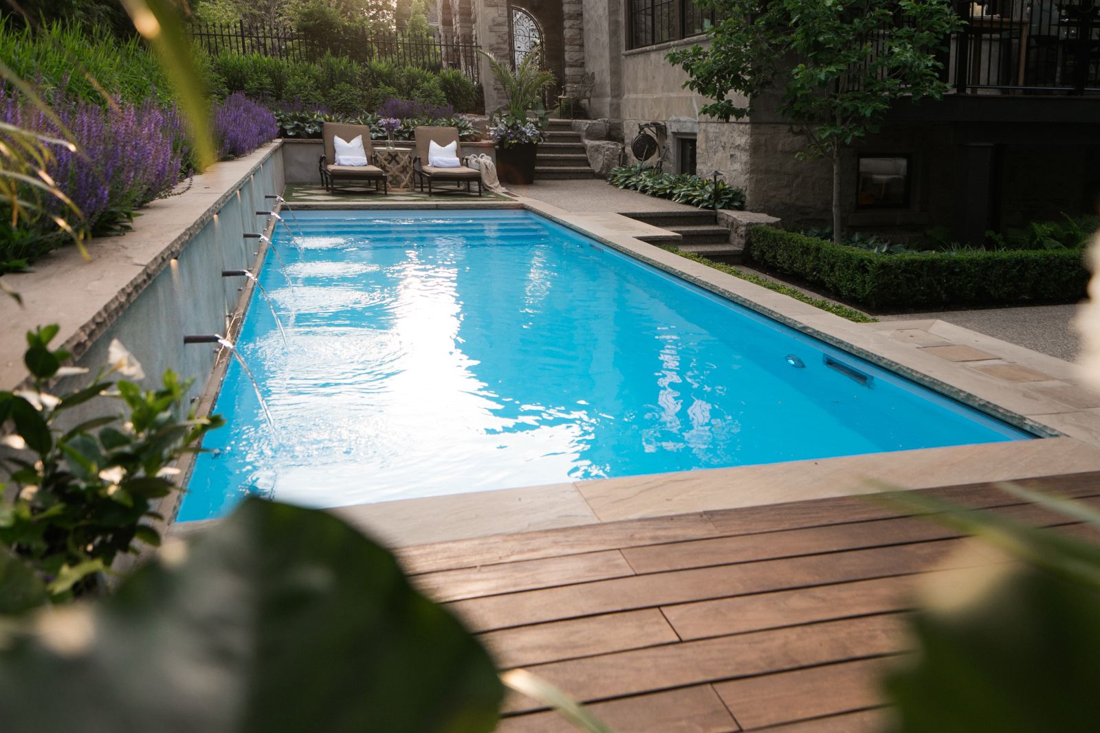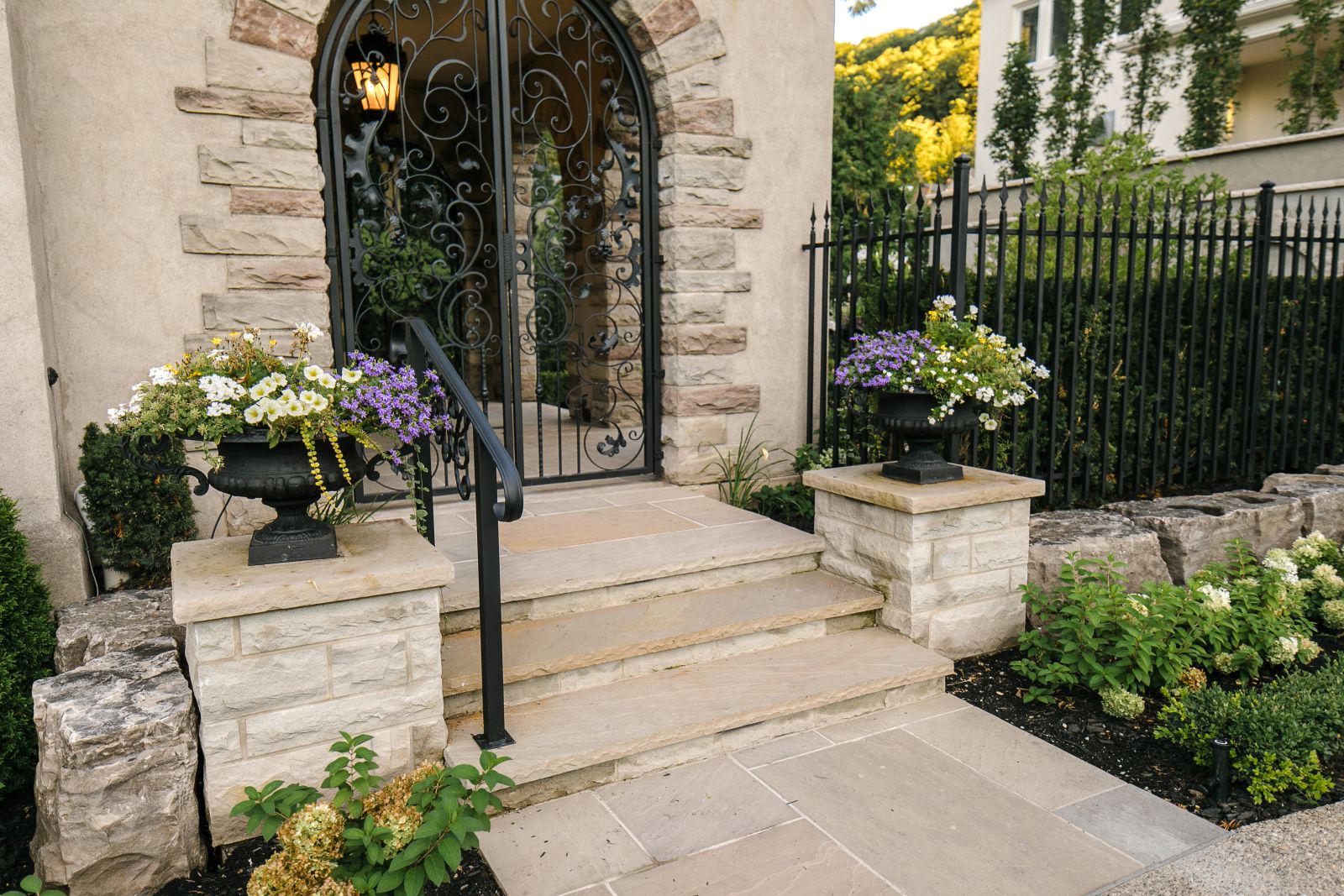 This project was completed in multiple phases to suit our client’s needs. Initially, we focused on constructing the front, side, and backyard, followed by the addition of a sunroom and a complete basement renovation. In the front yard, we enhanced privacy and security with the installation of gates and pillars. The front entrance was updated, and a side courtyard was added. The backyard features a pool, patio, sitting area, covered porch, and a basement walkout, creating an ideal setting for gatherings.